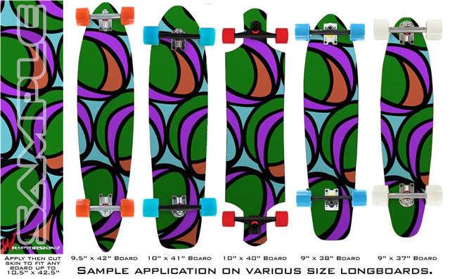 Our longboard skins are made so that one size fits boards up to 10” wide x 42” long. This means after applying the skin it you will trimming to fit you’re the shape of your board with a sharp utility knife.