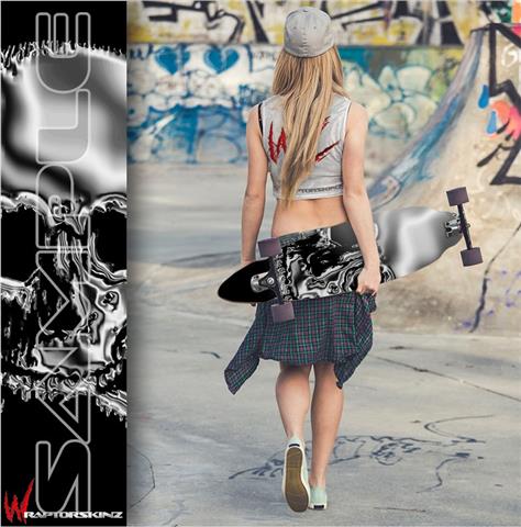 Chrome Skull on Black - Decal Style Vinyl Wrap Skin fits Longboard Skateboards up to 10"x42" (LONGBOARD NOT INCLUDED)