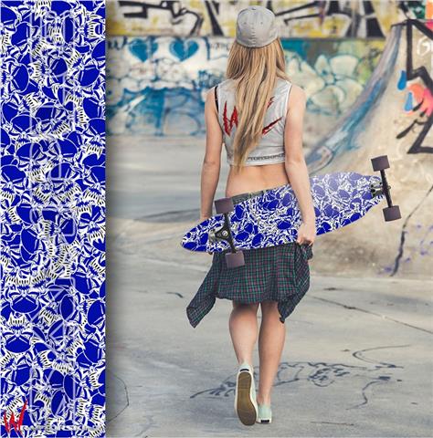 Scattered Skulls Royal Blue - Decal Style Vinyl Wrap Skin fits Longboard Skateboards up to 10"x42" (LONGBOARD NOT INCLUDED)