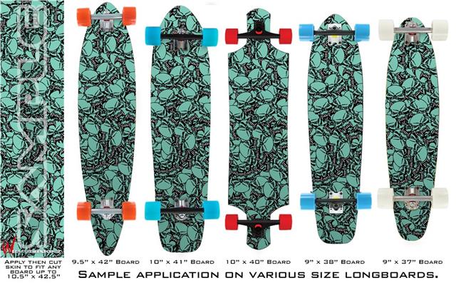 Scattered Skulls Seafoam Green - Decal Style Vinyl Wrap Skin fits Longboard Skateboards up to 10"x42" (LONGBOARD NOT INCLUDED)