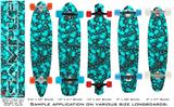 Scattered Skulls Neon Teal - Decal Style Vinyl Wrap Skin fits Longboard Skateboards up to 10"x42" (LONGBOARD NOT INCLUDED)