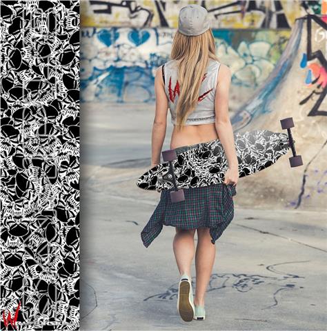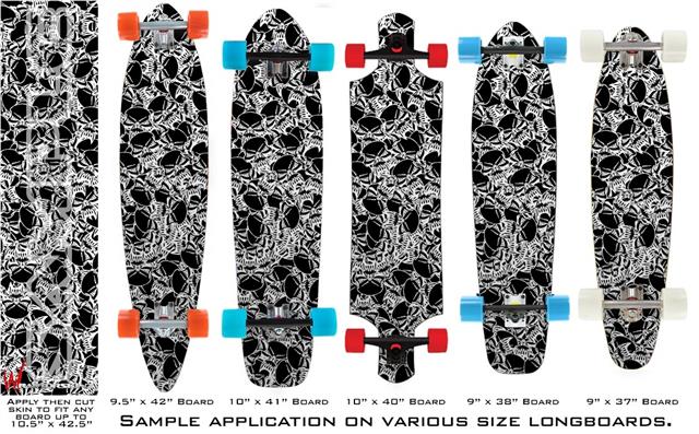 Scattered Skulls Black - Decal Style Vinyl Wrap Skin fits Longboard Skateboards up to 10"x42" (LONGBOARD NOT INCLUDED)