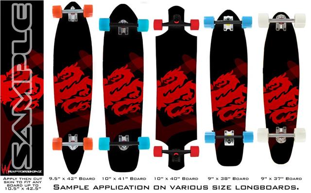 Oriental Dragon Red on Black - Decal Style Vinyl Wrap Skin fits Longboard Skateboards up to 10"x42" (LONGBOARD NOT INCLUDED)