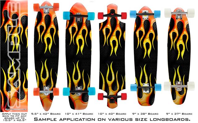 Metal Flames - Decal Style Vinyl Wrap Skin fits Longboard Skateboards up to 10"x42" (LONGBOARD NOT INCLUDED)