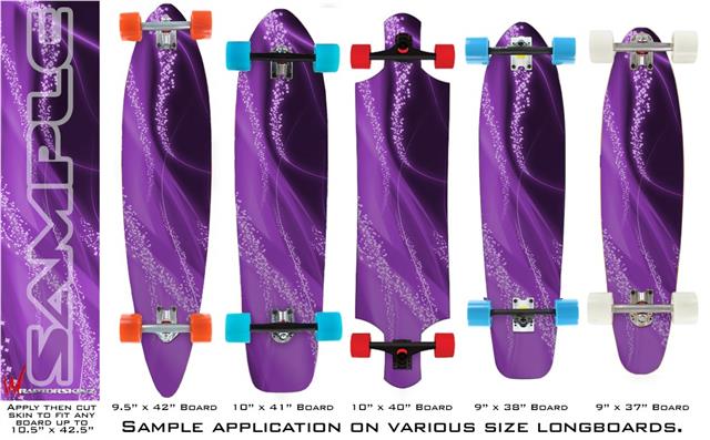Our longboard skins are made so that one size fits boards up to 10” wide x 42” long. This means after applying the skin it you will trimming to fit you’re the shape of your board with a sharp utility knife.
