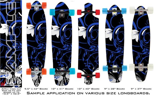 Our longboard skins are made so that one size fits boards up to 10” wide x 42” long. This means after applying the skin it you will trimming to fit you’re the shape of your board with a sharp utility knife.