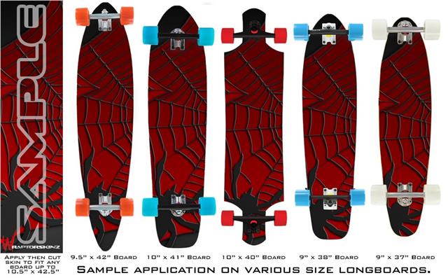 Our longboard skins are made so that one size fits boards up to 10” wide x 42” long. This means after applying the skin it you will trimming to fit you’re the shape of your board with a sharp utility knife.