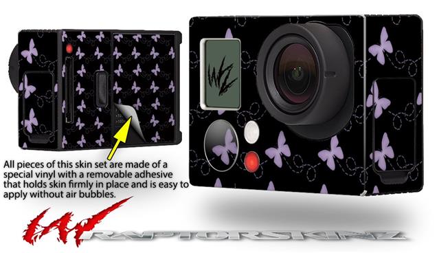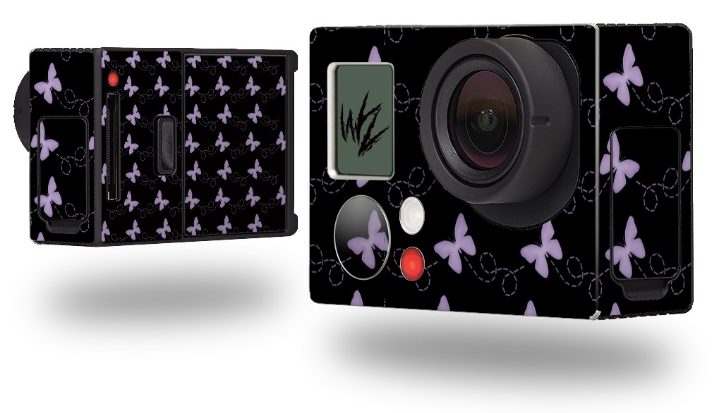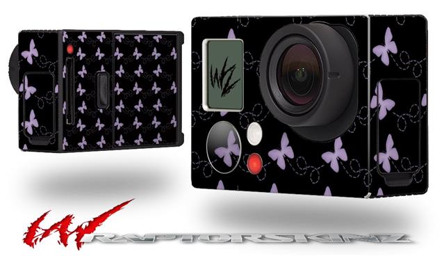 Pastel Butterflies Purple on Black - Decal Style Skin fits GoPro Hero 3+ Camera (GOPRO NOT INCLUDED)