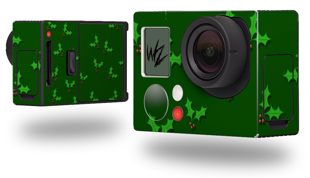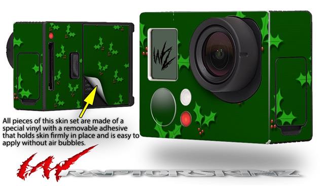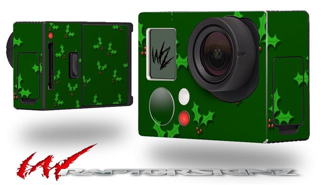 Christmas Holly Leaves on Green - Decal Style Skin fits GoPro Hero 3+ Camera (GOPRO NOT INCLUDED)