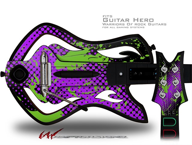 Halftone Splatter Green Purple Decal Style Skin - fits Warriors Of Rock Guitar Hero Guitar (GUITAR NOT INCLUDED)