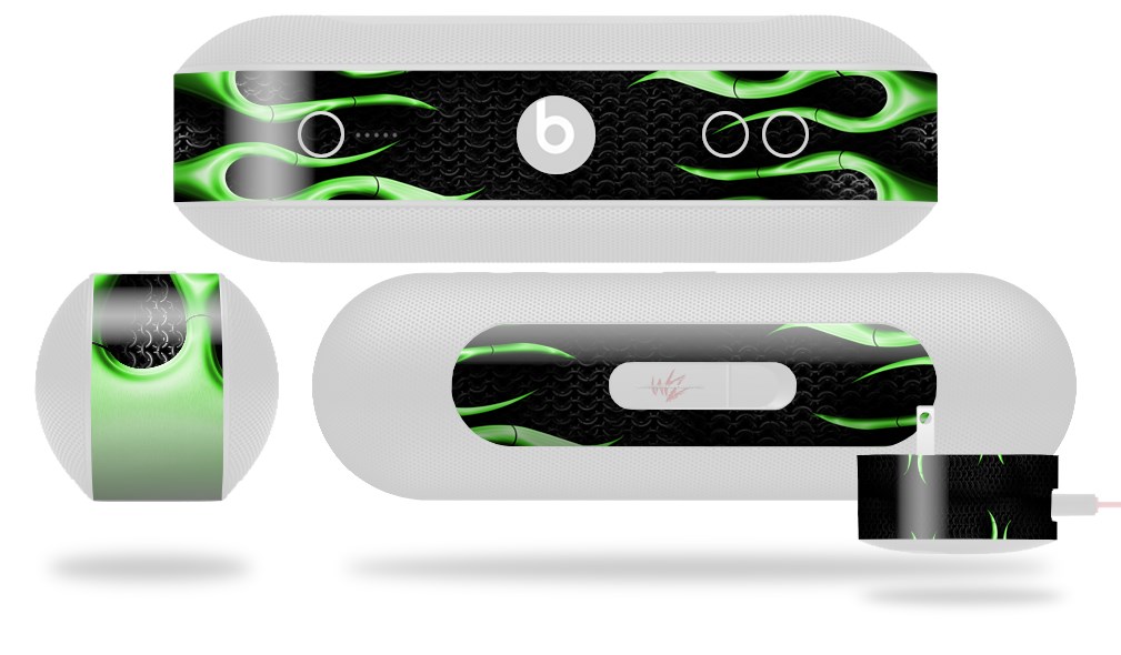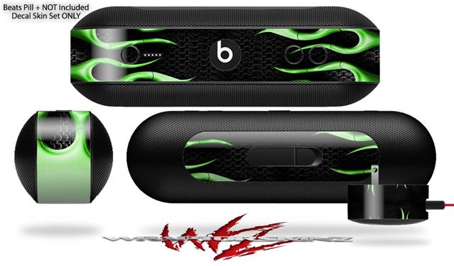 Decal Style Wrap Skin works with Beats Pill Plus Speaker Metal Flames Green Skin Only (BEATS PILL NOT INCLUDED)