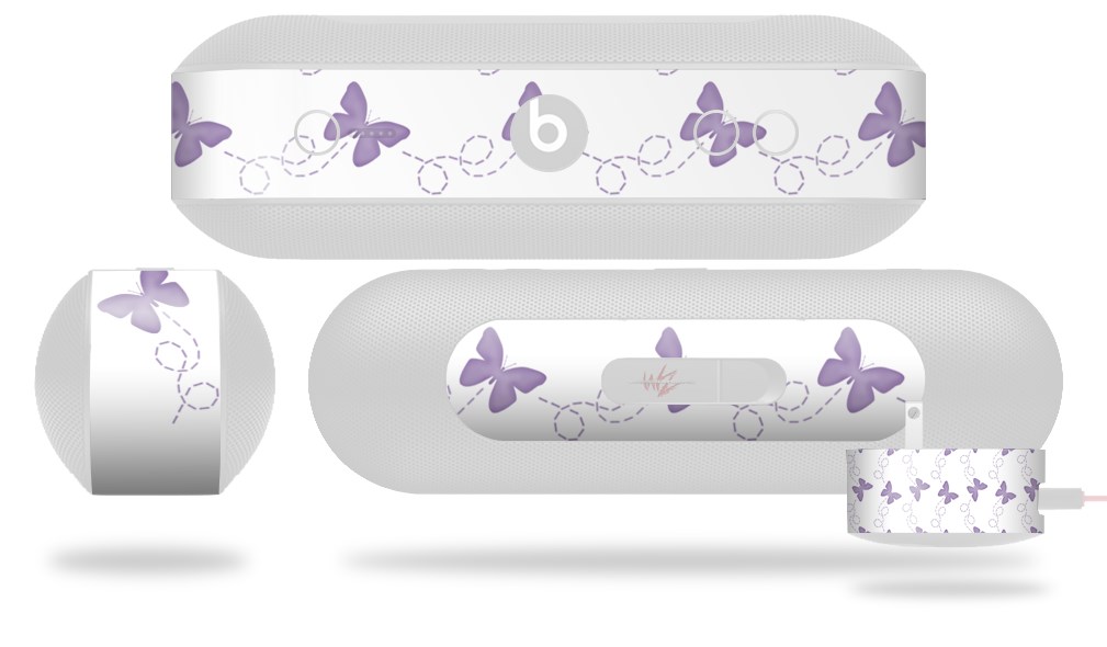 Decal Style Wrap Skin works with Beats Pill Plus Speaker Pastel Butterflies Purple on White Skin Only (BEATS PILL NOT INCLUDED)