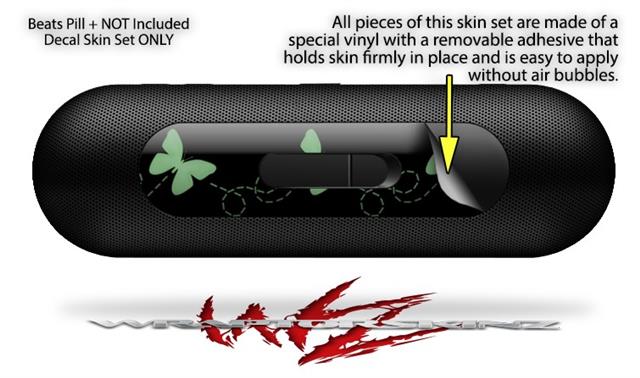 Decal Style Wrap Skin works with Beats Pill Plus Speaker Pastel Butterflies Green on Black Skin Only (BEATS PILL NOT INCLUDED)
