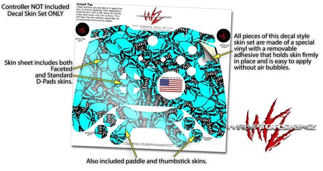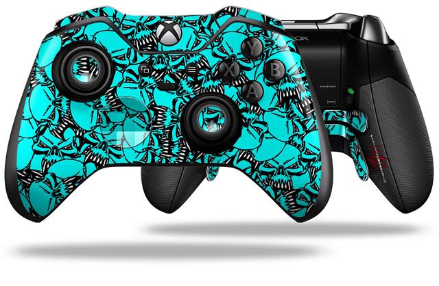 Scattered Skulls Neon Teal - Decal Style Skin fits Microsoft XBOX One ELITE Wireless Controller (CONTROLLER NOT INCLUDED)
