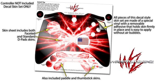 Lightning Red - Decal Style Skin fits Microsoft XBOX One ELITE Wireless Controller (CONTROLLER NOT INCLUDED)