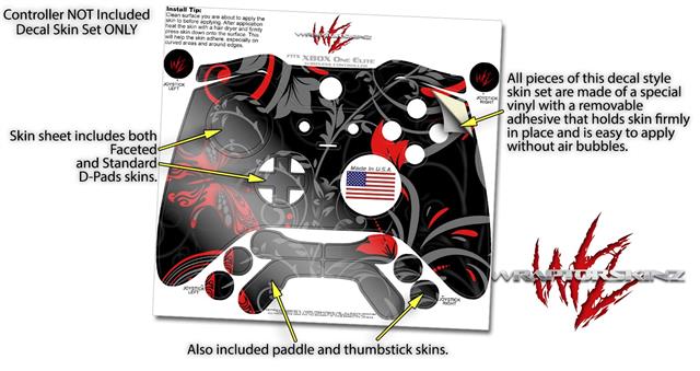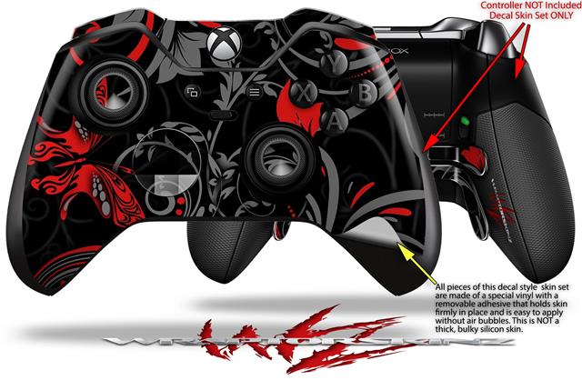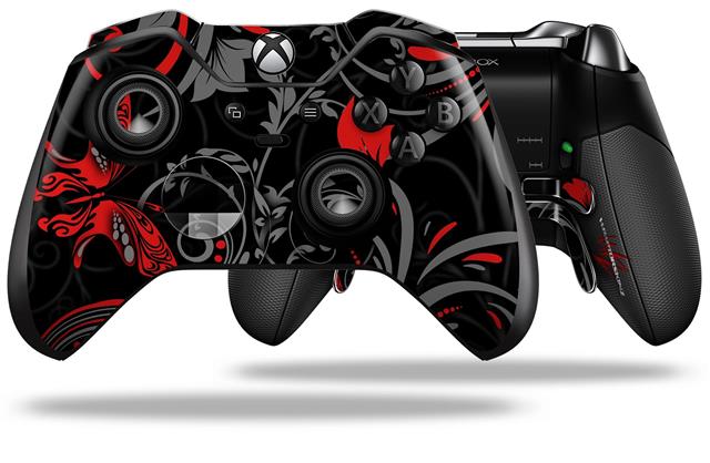 Twisted Garden Gray and Red - Decal Style Skin fits Microsoft XBOX One ELITE Wireless Controller (CONTROLLER NOT INCLUDED)