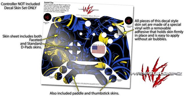 Twisted Garden Blue and Yellow - Decal Style Skin fits Microsoft XBOX One ELITE Wireless Controller (CONTROLLER NOT INCLUDED)