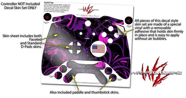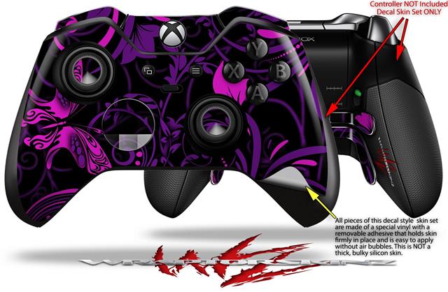 Twisted Garden Purple and Hot Pink - Decal Style Skin fits Microsoft XBOX One ELITE Wireless Controller (CONTROLLER NOT INCLUDED)