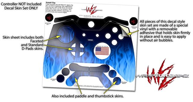 Fire Blue - Decal Style Skin fits Microsoft XBOX One ELITE Wireless Controller (CONTROLLER NOT INCLUDED)