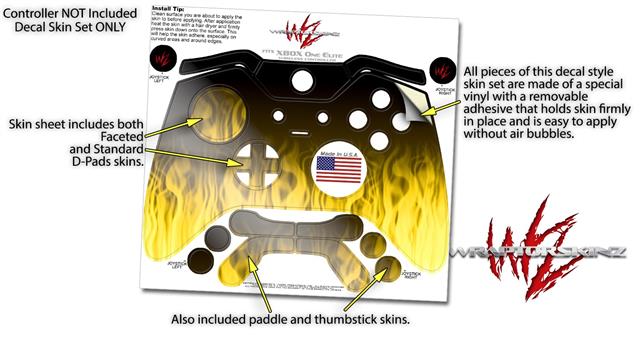 Fire Yellow - Decal Style Skin fits Microsoft XBOX One ELITE Wireless Controller (CONTROLLER NOT INCLUDED)