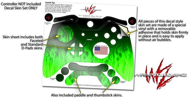 Fire Green - Decal Style Skin fits Microsoft XBOX One ELITE Wireless Controller (CONTROLLER NOT INCLUDED)