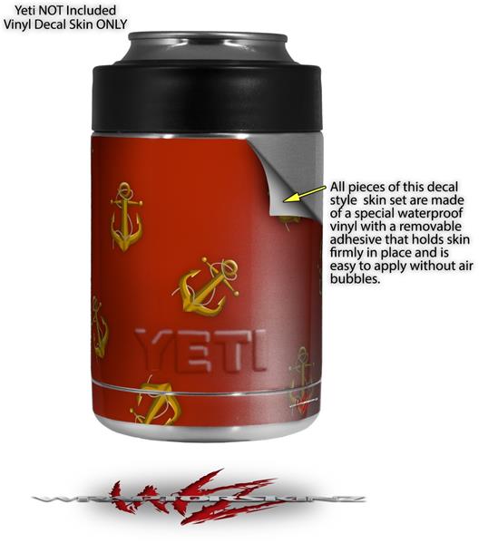 Skin Decal Wrap for Yeti Colster, Ozark Trail and RTIC Can Coolers - Anchors Away Red Dark (COOLER NOT INCLUDED)