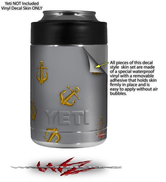 Skin Decal Wrap for Yeti Colster, Ozark Trail and RTIC Can Coolers - Anchors Away Gray (COOLER NOT INCLUDED)