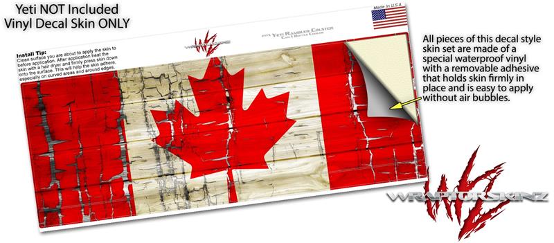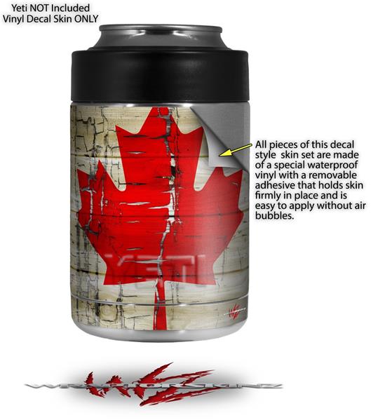 Skin Decal Wrap for Yeti Colster, Ozark Trail and RTIC Can Coolers - Painted Faded and Cracked Canadian Canada Flag (COOLER NOT INCLUDED)