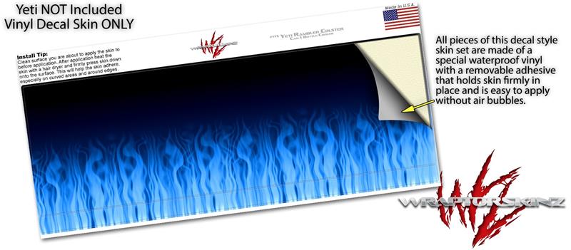 Skin Decal Wrap for Yeti Colster, Ozark Trail and RTIC Can Coolers - Fire Blue (COOLER NOT INCLUDED)