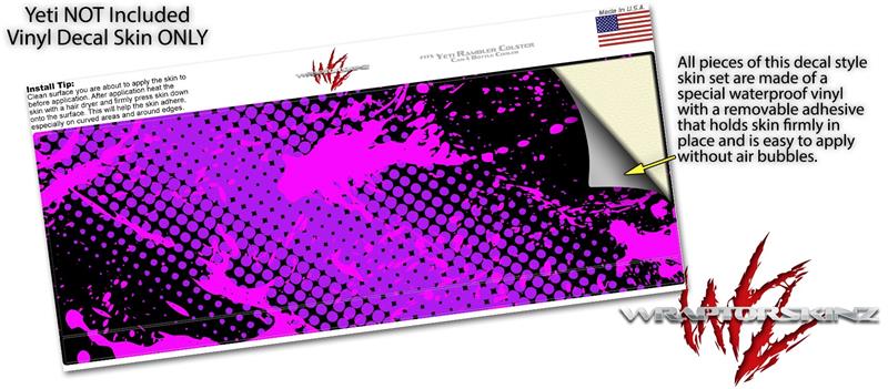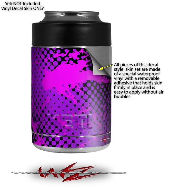 Skin Decal Wrap for Yeti Colster, Ozark Trail and RTIC Can Coolers - Halftone Splatter Hot Pink Purple (COOLER NOT INCLUDED)