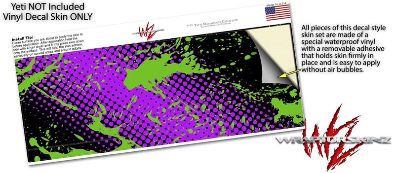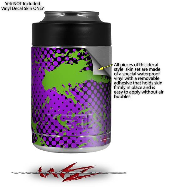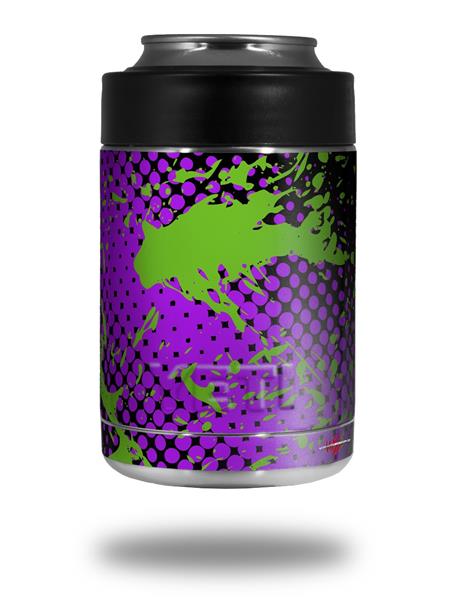 Skin Decal Wrap for Yeti Colster, Ozark Trail and RTIC Can Coolers - Halftone Splatter Green Purple (COOLER NOT INCLUDED)