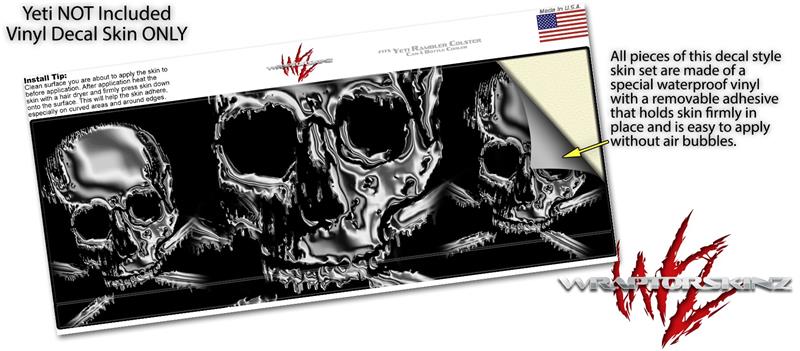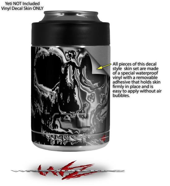 Skin Decal Wrap for Yeti Colster, Ozark Trail and RTIC Can Coolers - Chrome Skull on Black (COOLER NOT INCLUDED)