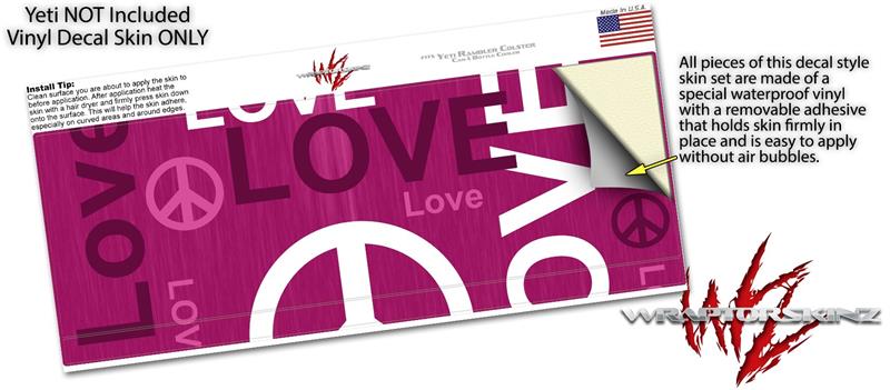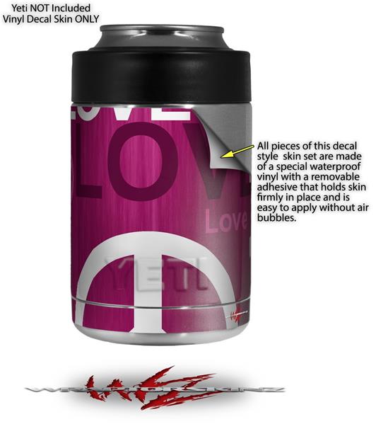 Skin Decal Wrap for Yeti Colster, Ozark Trail and RTIC Can Coolers - Love and Peace Hot Pink (COOLER NOT INCLUDED)