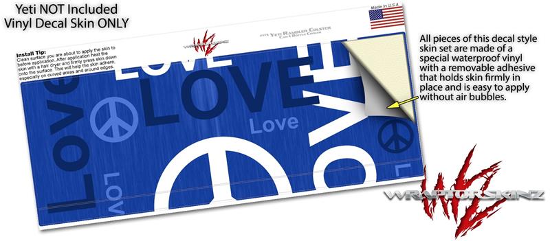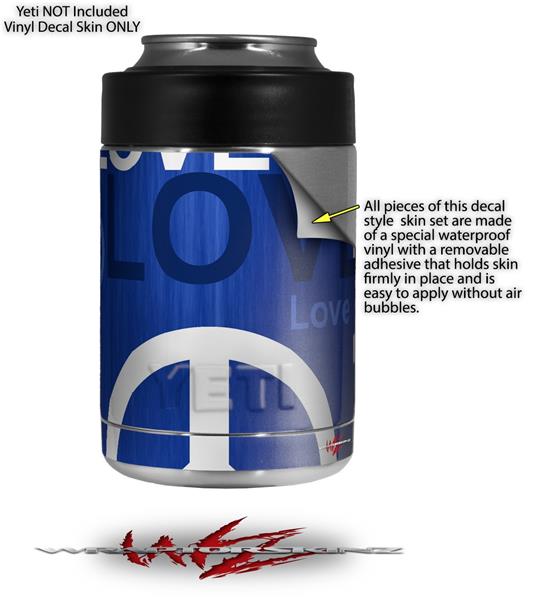 Skin Decal Wrap for Yeti Colster, Ozark Trail and RTIC Can Coolers - Love and Peace Blue (COOLER NOT INCLUDED)
