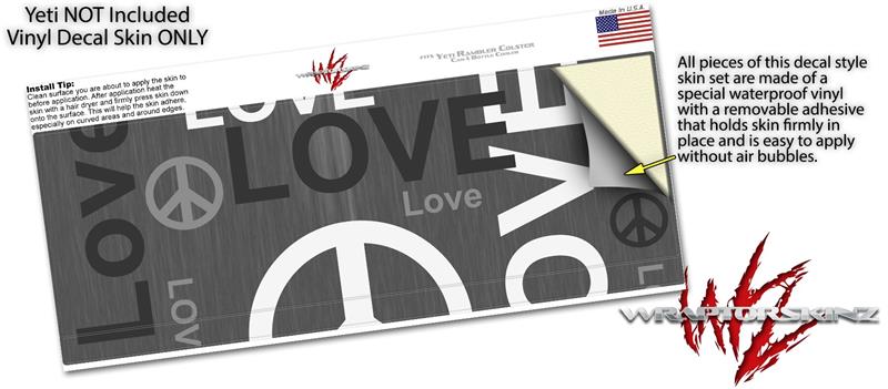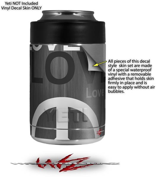 Skin Decal Wrap for Yeti Colster, Ozark Trail and RTIC Can Coolers - Love and Peace Gray (COOLER NOT INCLUDED)