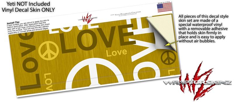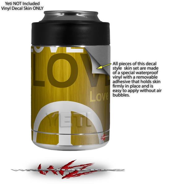 Skin Decal Wrap for Yeti Colster, Ozark Trail and RTIC Can Coolers - Love and Peace Yellow (COOLER NOT INCLUDED)