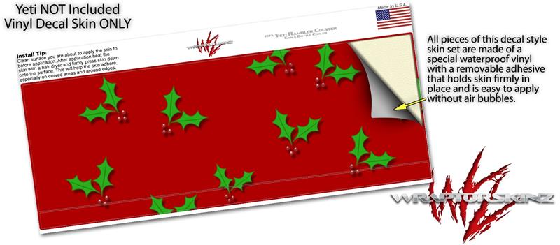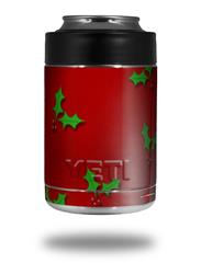 Skin Decal Wrap for Yeti Colster, Ozark Trail and RTIC Can Coolers - Christmas Holly Leaves on Red (COOLER NOT INCLUDED)