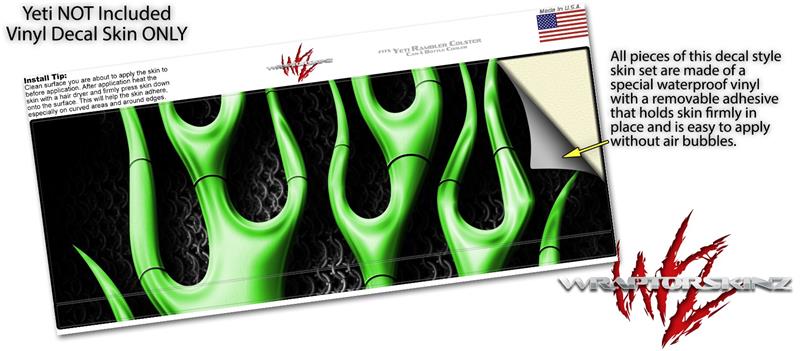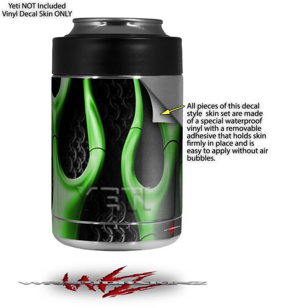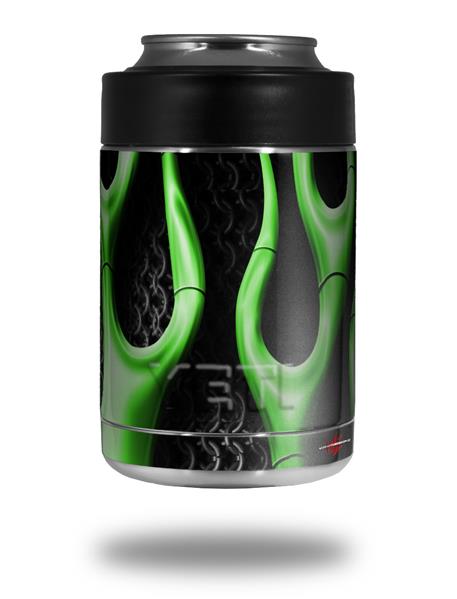 Skin Decal Wrap for Yeti Colster, Ozark Trail and RTIC Can Coolers - Metal Flames Green (COOLER NOT INCLUDED)