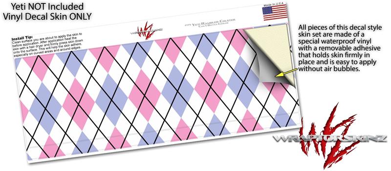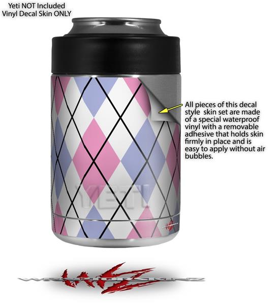 Skin Decal Wrap for Yeti Colster, Ozark Trail and RTIC Can Coolers - Argyle Pink and Blue (COOLER NOT INCLUDED)
