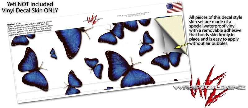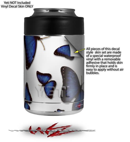 Skin Decal Wrap for Yeti Colster, Ozark Trail and RTIC Can Coolers - Butterflies Blue (COOLER NOT INCLUDED)