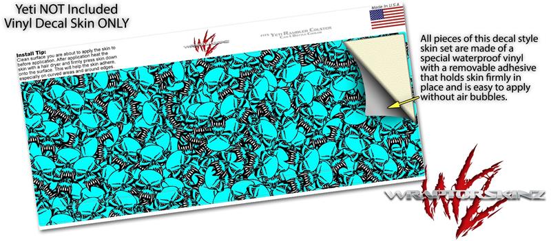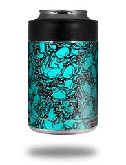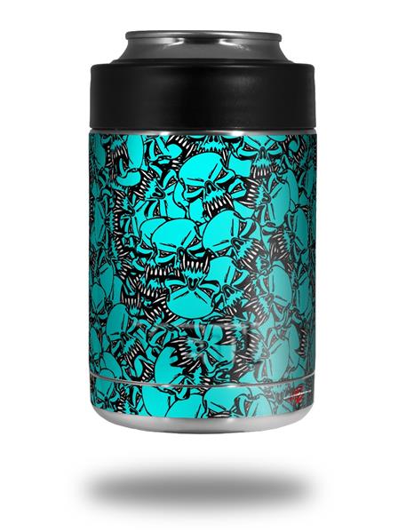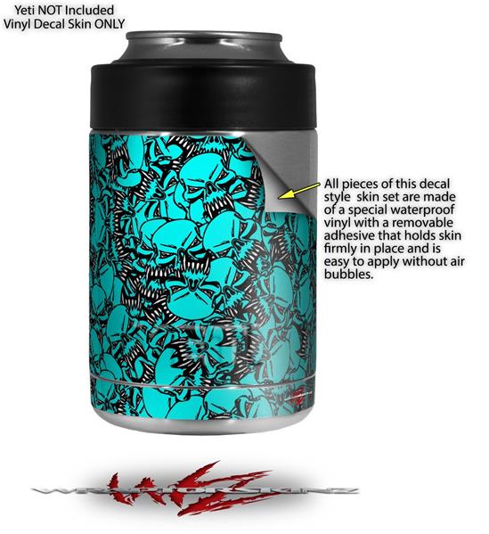 Skin Decal Wrap for Yeti Colster, Ozark Trail and RTIC Can Coolers - Scattered Skulls Neon Teal (COOLER NOT INCLUDED)
