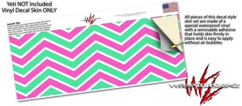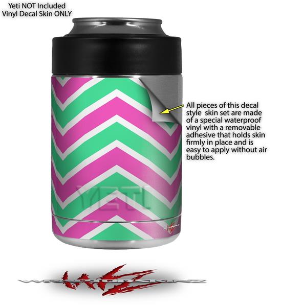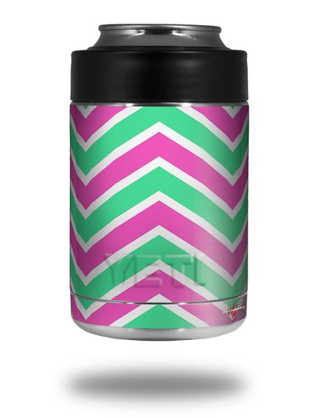 Skin Decal Wrap for Yeti Colster, Ozark Trail and RTIC Can Coolers - Zig Zag Teal Green and Pink (COOLER NOT INCLUDED)