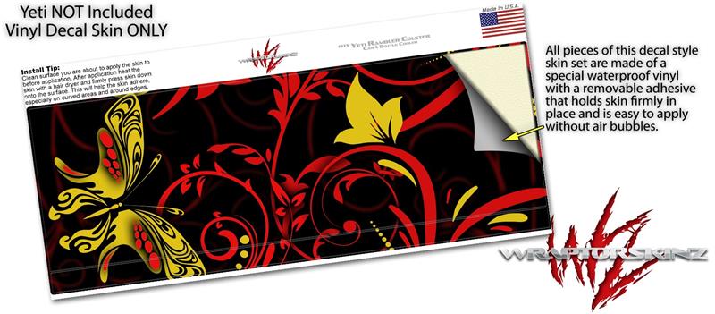 Skin Decal Wrap for Yeti Colster, Ozark Trail and RTIC Can Coolers - Twisted Garden Red and Yellow (COOLER NOT INCLUDED)