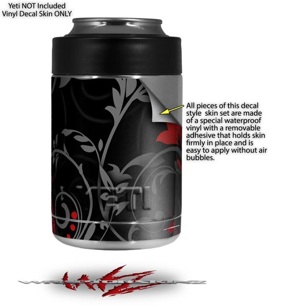 Skin Decal Wrap for Yeti Colster, Ozark Trail and RTIC Can Coolers - Twisted Garden Gray and Red (COOLER NOT INCLUDED)