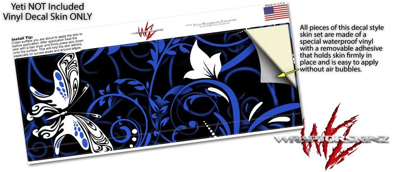 Skin Decal Wrap for Yeti Colster, Ozark Trail and RTIC Can Coolers - Twisted Garden Blue and White (COOLER NOT INCLUDED)