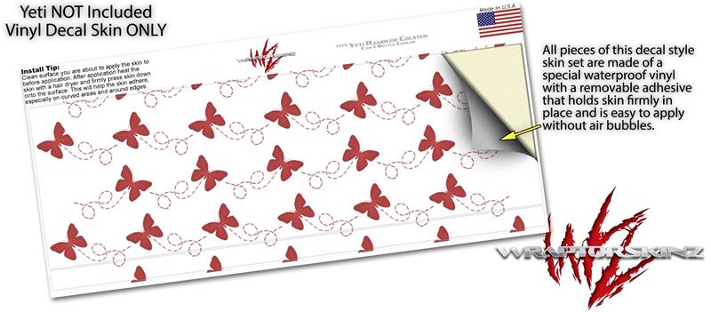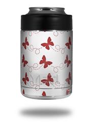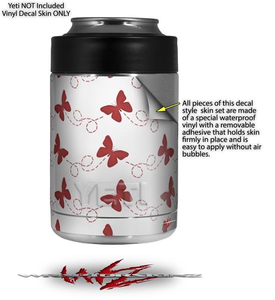 Skin Decal Wrap for Yeti Colster, Ozark Trail and RTIC Can Coolers - Pastel Butterflies Red on White (COOLER NOT INCLUDED)