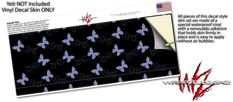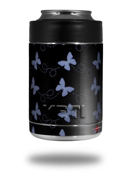 Skin Decal Wrap for Yeti Colster, Ozark Trail and RTIC Can Coolers - Pastel Butterflies Blue on Black (COOLER NOT INCLUDED)