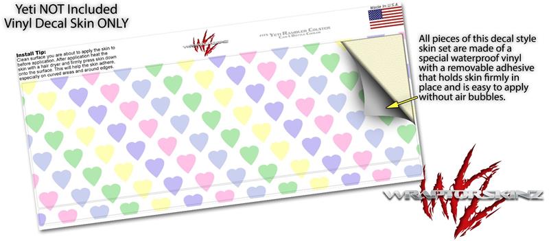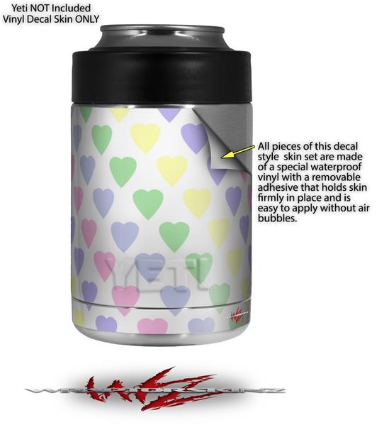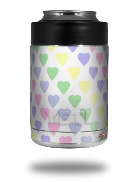 Skin Decal Wrap for Yeti Colster, Ozark Trail and RTIC Can Coolers - Pastel Hearts on White (COOLER NOT INCLUDED)