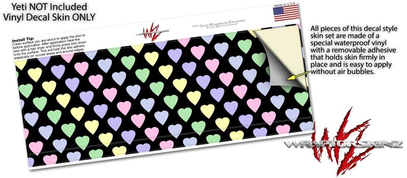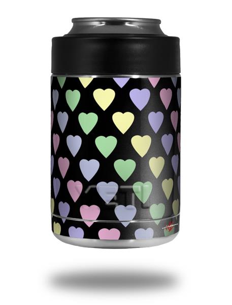 Skin Decal Wrap for Yeti Colster, Ozark Trail and RTIC Can Coolers - Pastel Hearts on Black (COOLER NOT INCLUDED)