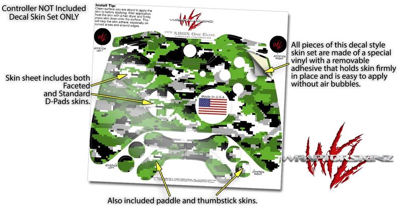 WraptorCamo Digital Camo Green - Decal Style Skin fits Microsoft XBOX One ELITE Wireless Controller (CONTROLLER NOT INCLUDED)